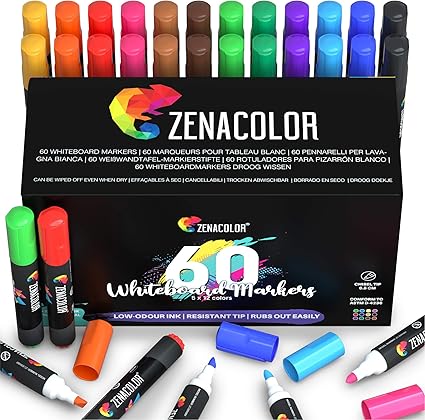 Boite De 60 Feutre Tableau Blanc Effacable A Sec 5x12 Couleurs Intenses Marqueur A Pointe Biseautee