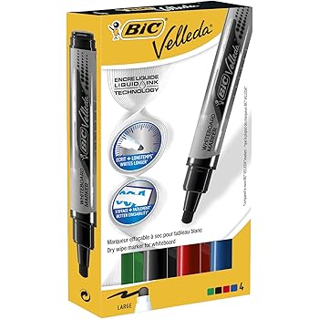 Bic Velleda 1711 Feutres Pour Tableau Blanc Effacables A Sec A Pointe Conique Moyenne Couleurs Assorties Etui Carton De 4 Amazon Fr Fournitures De Bureau