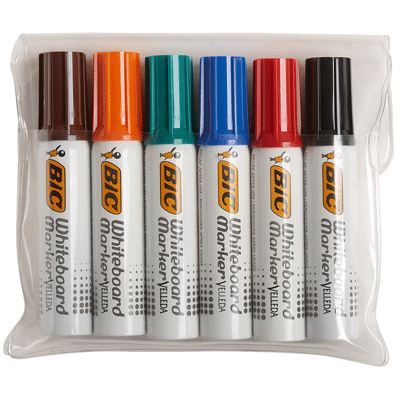 Bic Velleda 1781 Feutres Pour Tableau Blanc Effacables A Sec Pointe Biseautee Large Couleurs Assorties Etui Carton De 6 Amazon Fr Fournitures De Bureau