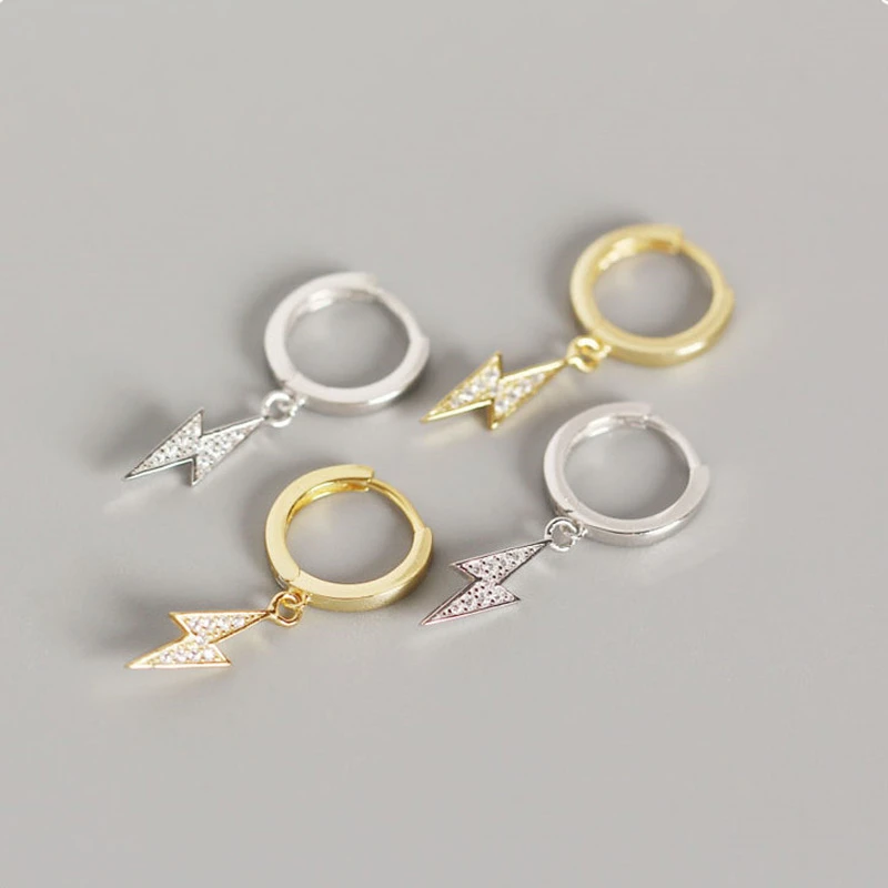 Wtltc 925 Sterling Sliver Cz Bolt Lightning Hoop Earrings Femme Drop Small Huggies Hoops Earrings Steampunk Tiny Charms Earrings Hoop Earrings Aliexpress