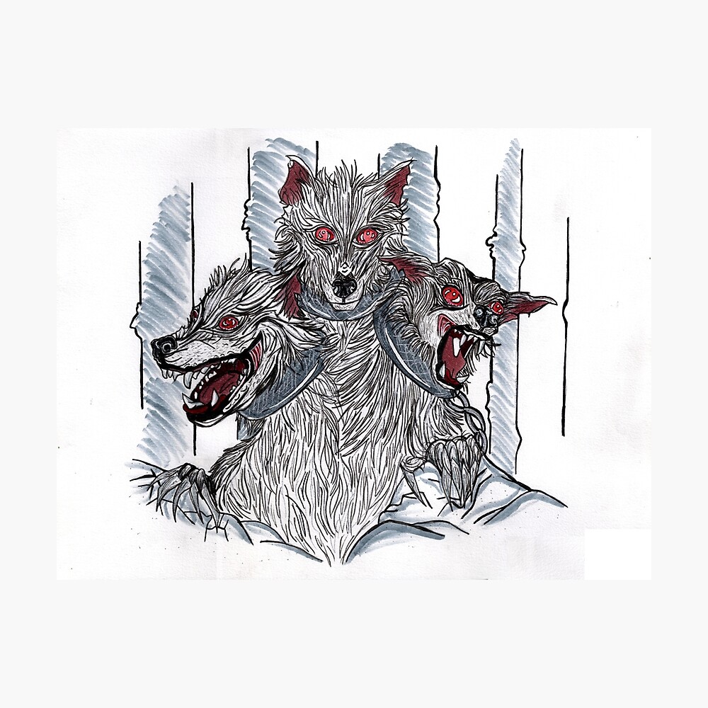 Cerberus Albino Fabelwesen Kryptiden Monster Bestien Unterwelt Hunde Eingesperrt Dreikopfig Legenden Klauen Poster Von Juniorer Redbubble