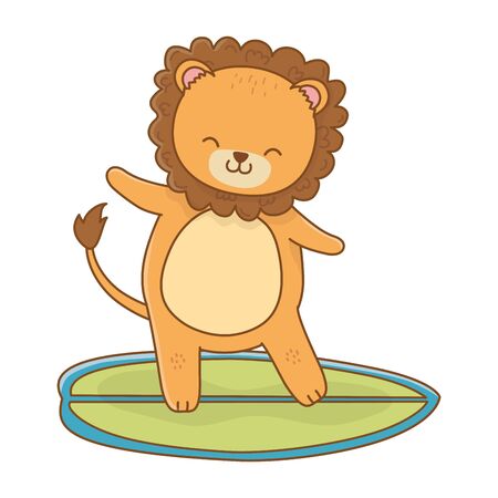 Summer Vacation Relax Time Beach Holidays Scene Cute Little Happy Animal Lion Over Surf Table Cartoon Vector Illustration Graphic Design Royalty Free Vector Graphics