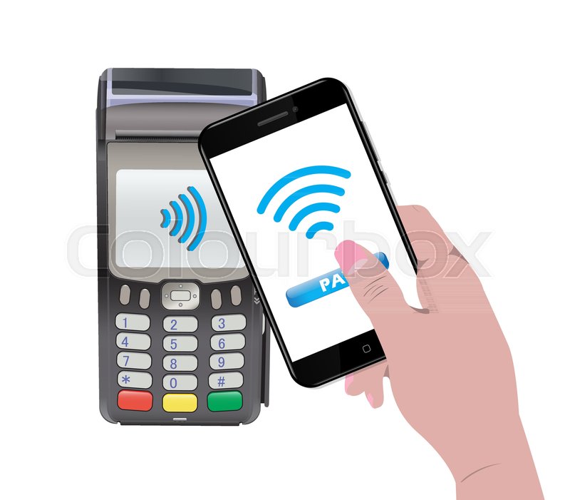 Pos Terminal With Hand Holding A Stock Vector Colourbox
