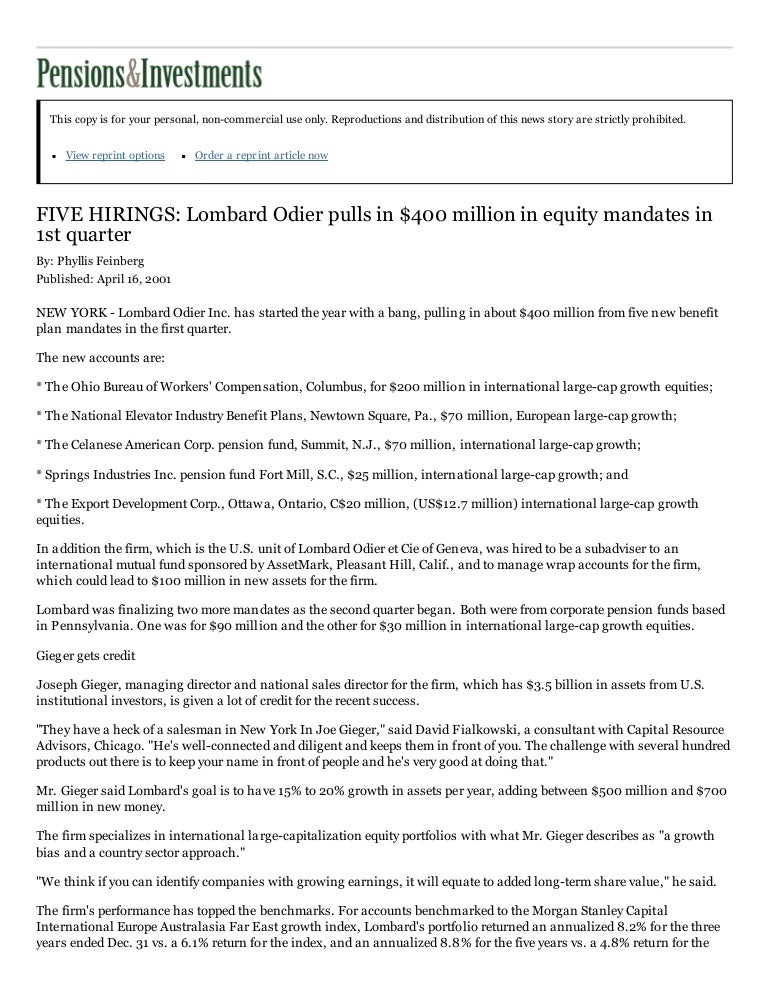Five Hirings Lombard Odier Pulls In 400 Million In Equity Mandates