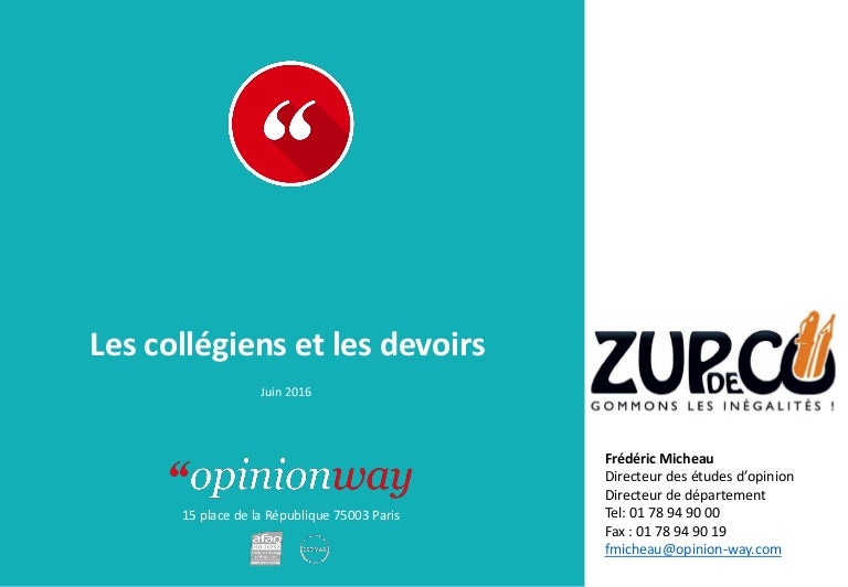 Zupdeco Les Collegiens Et Les Devoirs Par Opinionway Juin 16