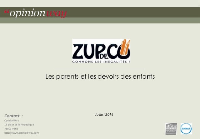 Sondage Opinionway Pour Zupdeco Les Parents Et Les Devoirs Des Enfa