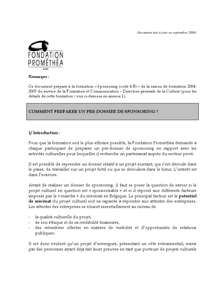 Comment Preparer Un Dossier De Sponsor Mecenat Fondation Non Caritative
