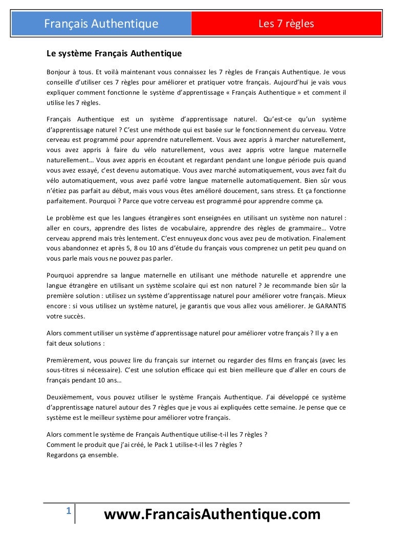 Vous comprenez et utilisez des expressions familières et quotidiennes ainsi que des énoncés très simples qui visent à satisfaire des besoins concrets Vous pouvez vous présenter ou présenter quelqu’un et poser à une personne des questions la concernant – par exemple, sur son lieu d’habitation, ses relations, ce qui lui appartient, etc – et vous êtes capable de répondre au. Merci infiniment Alexandre, cet article m’a trop motivé à apprendre à parler français, je te promets de commencer a suivre ces conseils dés maintenant, je n’arrêterai que lorsque mon niveau sera C1 ou C2 D. "Je ne parle pas français" is a short story by Katherine Mansfield She started it at the end of January, 1918 and finished it by February 10 It was first published by the Heron Press in early 19, and an excised version was published in Bliss and Other Stories later that year.