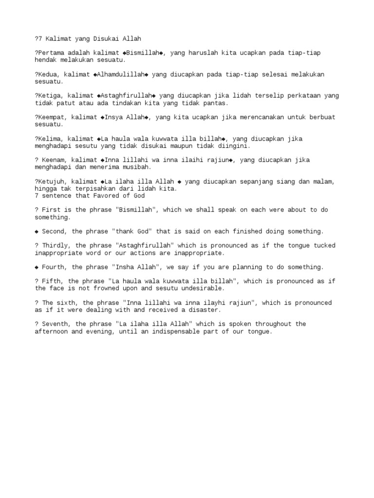 7 Kalimat Yang Disukai Allah