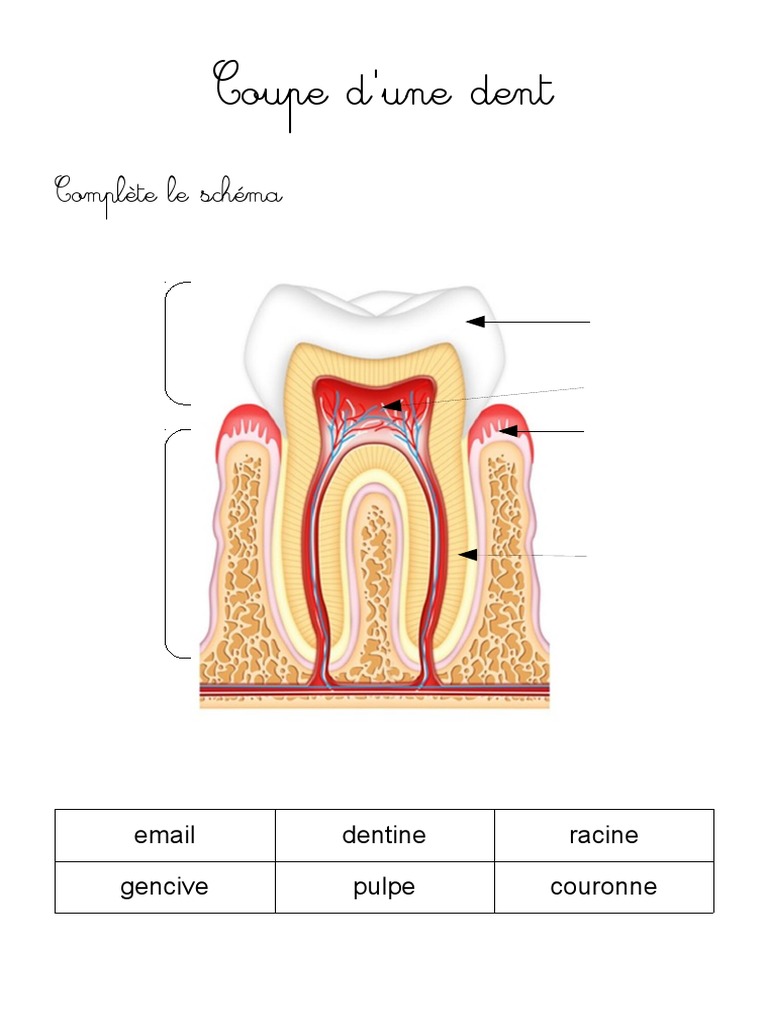 Le brossage des dents adapté à l'âge Les dents de lait ont également besoin d'être nettoyéesPour cela, plusieurs techniques de brossage existent nettoyez les dents de votre enfant dès leur éruption (à environ 6 mois) avec une compresse humide ou à l'aide d'une brosse à dents imprégnée d'une trace de dentifrice fluoré adapté à l'âge de l'enfant. Cet article est consacré à la considération de la structure et du fonctionnement des dents un organe vital du corps humain Les dents sont le reflet de la santé ou de la maladie d’une personne Selon leur état insatisfaisant, divers troubles fonctionnels du corps peuvent être jugés De plus, aujourd'hui, un beau sourire est la clé du succès dans votre carrière et dans vos. Compléter le schéma coupe transversale de la dent Coupe transversale de la dent,schéma à compléter Compléter le schéma de la dentition Elles sont au nombre de 32, dont 8 incisives, 4 canines, 8 prémolaires et 12 molaires, compléter le schéma Compléter le schéma des différents muscles.