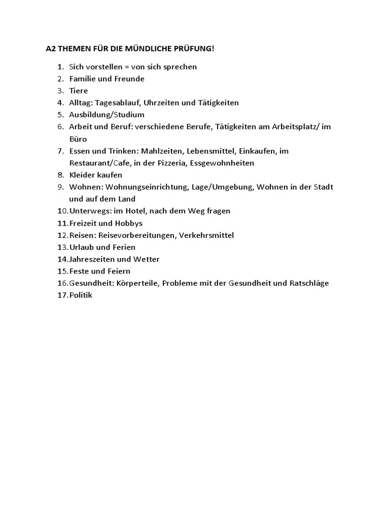 Prufungstraining Sprechen Themen Mundliche Prufung Docx