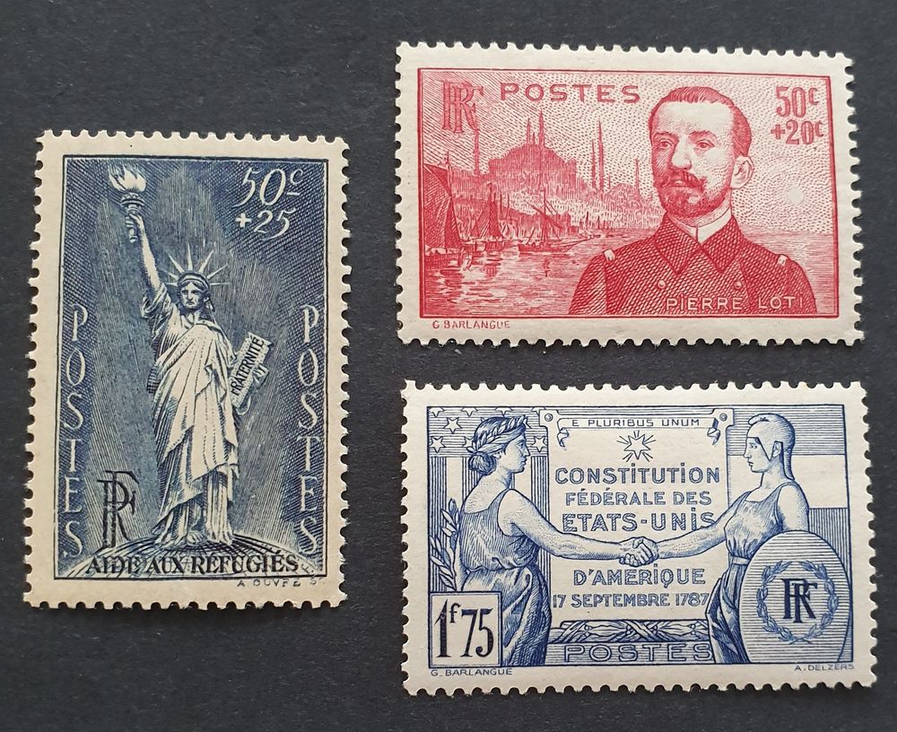 Timbre France 1937 Collection No 352 Neuf Avec Charniere Gomme Non Intacte Statue De La Liberte Collectionnables Hobbies