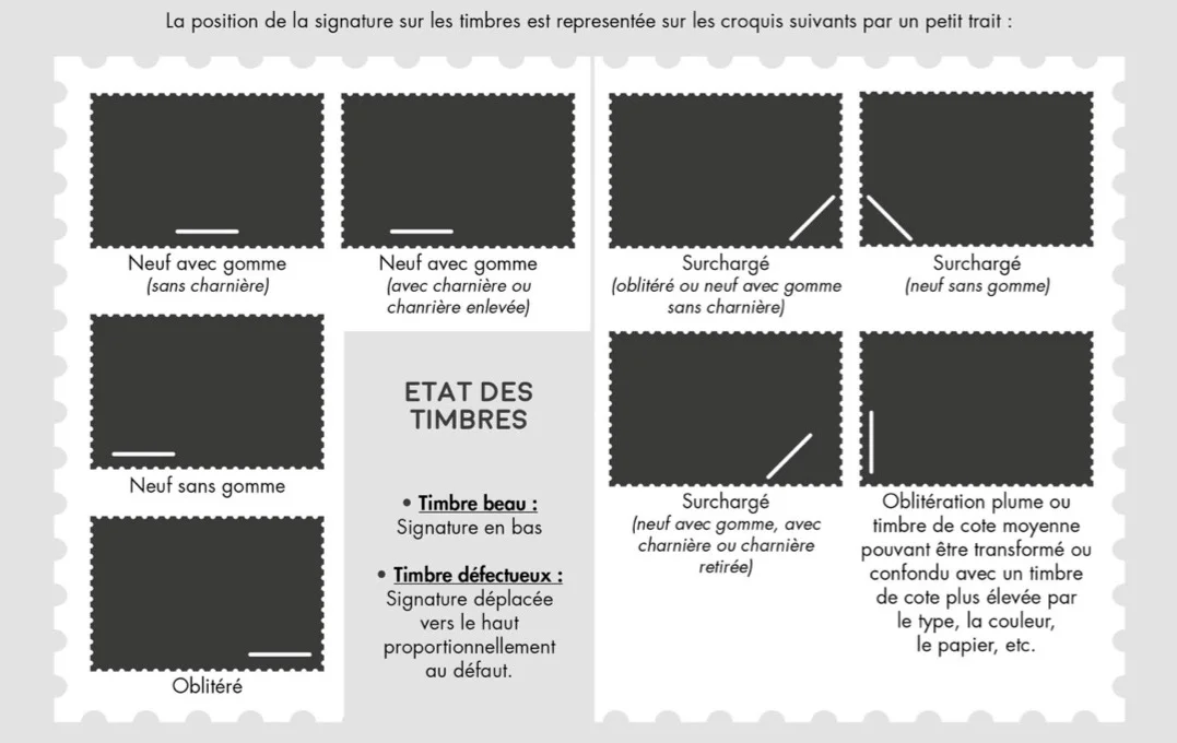 Avec Charnière le prix moyen est de 150 et 500 € toujours pour un timbre en parfait etat un timbre oblitéré sera au prix de 35 à 0 € selon la qualité Sur lettre entre 50 et 450 €. Informations Collections17 ouvert du mardi au samedi de 10h à 12h30 et de 14h30 à 18h 9, rue Amelot La Rochelle France Appeleznous Écriveznous mp@aolcom. 4 Timbre endommagé par des charnières Degrés de condition de la gomme NH (Never Hinged) Le timbre n'a jamais eu de charnière et la gomme est entièrement présente au revers Le revers doit donc être intact de toute marque H (Hinged) Le timbre a.