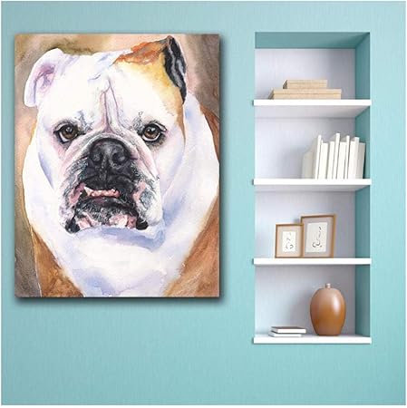 Unqiue Art Mural Anglais Bouledogue En Colere Peinture Sur Toile Animale Sur Blanc Pour Un Salon Imprime Sur Un Tableau D Art Mural En Toile Sans Cadre 60x80cm Amazon Fr Cuisine Maison