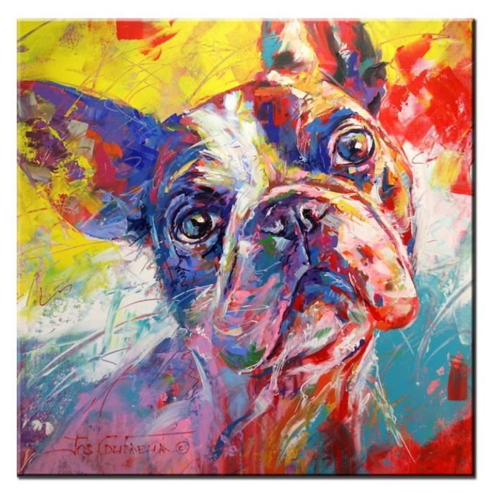 Tableau Peinture A L Huile Chihuahua Bulldog Anglais 80 X 80 Achat Prix Fnac