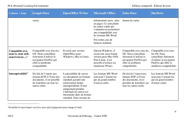 Univ Fribourg Tableau Comparatif Editeur De Texte