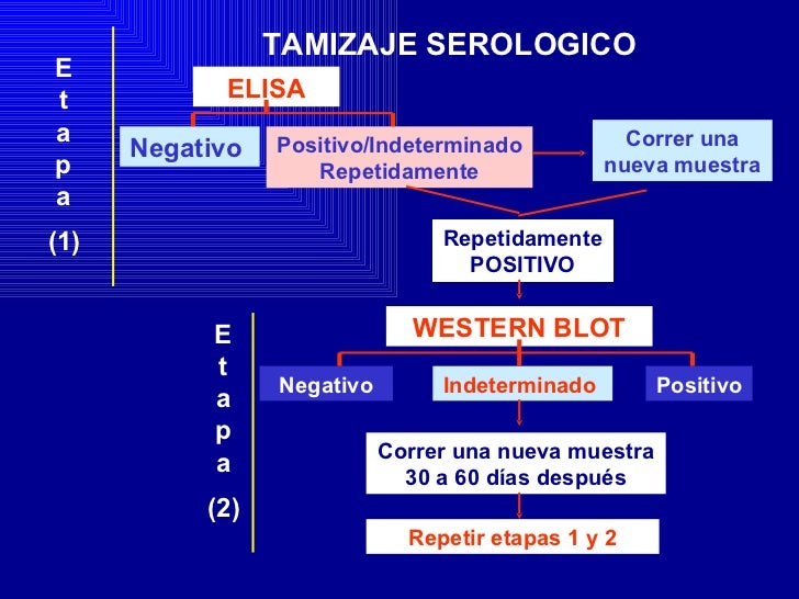 Si la prueba inicial de VIH es positiva, el siguiente paso es realizar un análisis inmunológico de diferenciación de anticuerpos VIH1/VIH2 para determinar si el individuo es portador del VIH1 o VIH2 Esta prueba produce resultados más rápidos que la prueba Western Blot que se recomendaba antes. Un western blot, ou immunoblot, est une méthode de biologie moléculaire qui permet la détection de protéines spécifiques sur une membrane La technique se déroule en plusieurs étapes des. This entry was posted in Posts, News and tagged diagnóstico, Infección, SIDA, transmisión, VIH on 01/12/16 by Enrique Álvarez Gómez Post navigation ← (Español) En Empíreo #YoTrabajoPositivo (Español) La vuelta de las infecciones de transmisión sexual (ITS) →.
