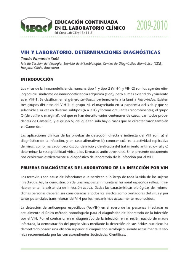 Diagnostico De Laboratorio De La Infeccion Por El Vih Del Tropismo Viral Y De Las Resistencias A Los Antirretrovirales Enfermedades Infecciosas Y Microbiologia Clinica