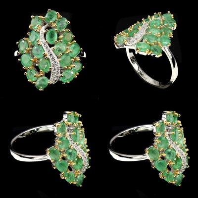 Bague Argent Massif Rhodiage Or Blanc Et Jaune Sertie D Emeraudes 4 42 Grammes Ebay