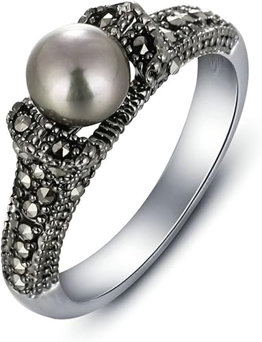 Anazoz Bague Perle Gris Femme Elegant Motifs Raffine Rhodiage Bague De Mariage Cadeau Pour Anniversaire Noel Amazon Fr Bijoux