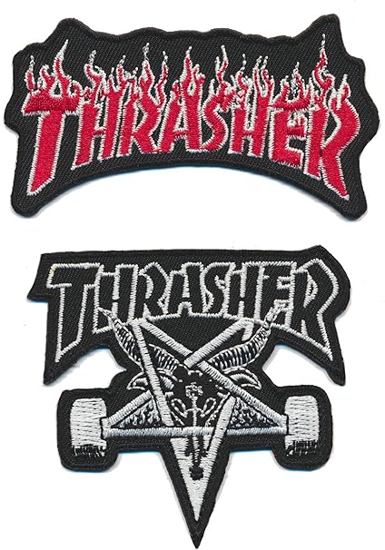 Lot De 2 Ecussons Thermocollants Thrasher Logo Du Magazine Americain De Skateboard Amazon Fr Auto Et Moto