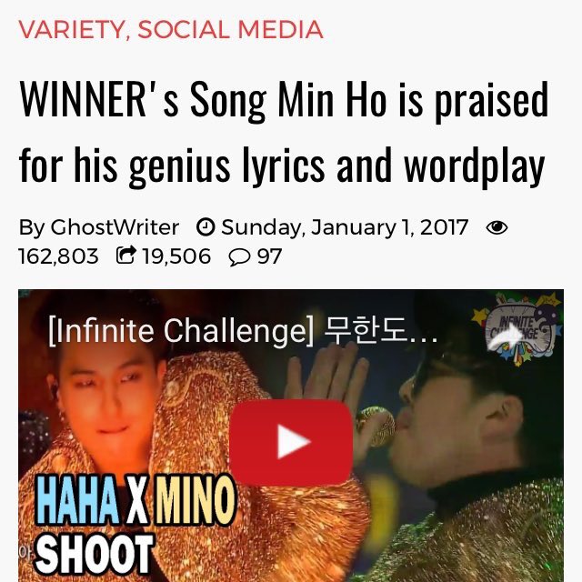 Song Minho começou sua carreira underground sob o nome de "Mino" ou "Hugeboy Mino", com outros rappers underground que tornaramse idols, como Zico e Kyung do Block B e Taewoon do SPEED Minho era inicialmente um trainee do grupo Block B, mas deixou o grupo antes mesmo do debut, por motivos pessoais. He was born with the birth name Song Minho, but for his stage name, he decided to use Mino He was one of the members of the boy band WINNER that was raised under YG Entertainment WINNER’s Mino is also famously known as a rapper, songwriter, and producer. Born March 30, 1993), better known by the stage name Mino, is a South Korean rapper, songwriter, producer and member of the boy group Winner, signed under YG Entertainment He appeared in the television series The Strongest KPOP Survival and Show Me the Money 4, where he finished as series runnerup.