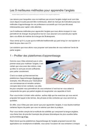 Tout ce qu’il faut pour apprendre l’anglais dans de bonnes conditions Une méthode efficace pour ceux qui souhaitent passer des examens d’anglais comme le TOEIC, le TOEFL ou le BULATS Le programme des méthodes De nombreux livres sont mis en vente chaque année afin de faciliter l’apprentissage de l’anglais aux élèves. Elle repose sur des méthodes d’apprentissage dynamiques et des moyens audiovisuels This methodology, which was provided by the United Nations Office on Drugs and Crime (UNODC), is a fundamental tool for generating harmonious family relations, using dynamic learning methods and audiovisual media. Méthode pour apprendre l’anglais respecter les fondamentaux La première chose qu’il faut avoir à l’esprit lorsque l’on cherche une méthode efficace pour apprendre l’anglais, c’est la nécessité d’être disponible En effet, vous ne pourrez jamais assimiler la langue si votre esprit est toujours accaparé par autre chose que vos cours d’anglais.