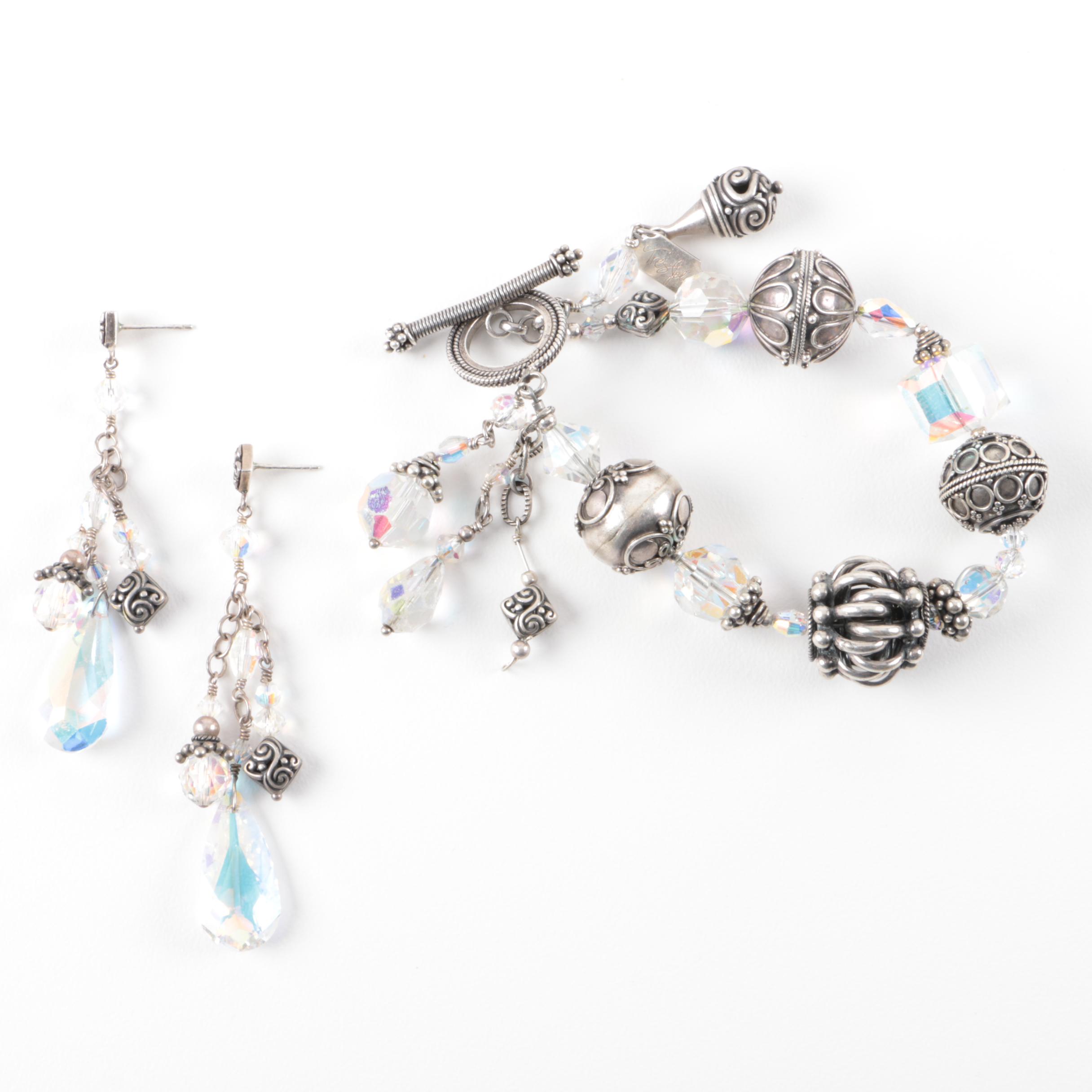 Tres Jolie Sterling Silver And Glass Bracelet And Earrings Ebth