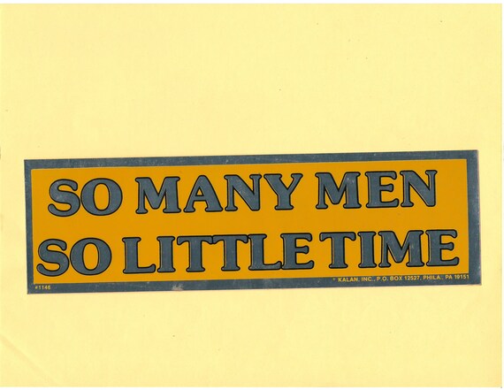 Shop So Many Men So Little Time Bumper Stickers from CafePress Make a statement with tons unique designs or create your own custom bumper sticker with text and images High quality printing on durable, weather resistant vinyl Free Returns 100% Money Back Guarantee Fast Shipping. Shop So Many Men So Little Time Bumper Stickers from CafePress Make a statement with tons unique designs or create your own custom bumper sticker with text and images High quality printing on durable, weather resistant vinyl Free Returns 100% Money Back Guarantee Fast Shipping. So Many Men, So Little Time Lyrics It's morning, I open my eyes / And everything's still the same / I turn to the guy who stayed last night / And ask him, "What's your name?" / It seems to happen.