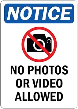 Amazon Com Notice No Photos Or Video Allowed Sign With Symbol Label Decal Sticker Retail Store Sign Sticks To Any Surface 8 Office Products