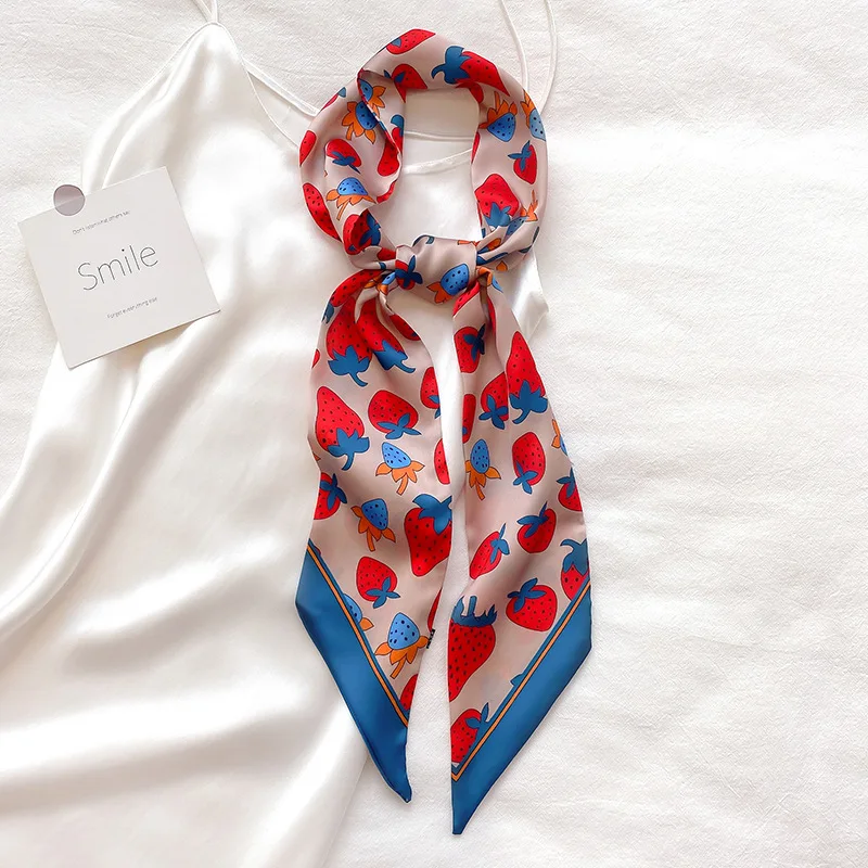 Koi Leaping Aesthetic Strawberry Long Silk Scarf Female Multi Function Decorative Scarf Headband Tie Wrist Strap Bag Belt Women S Scarves Aliexpress