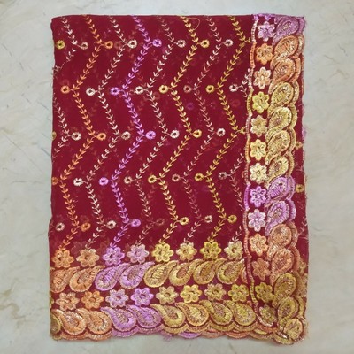 Vintage Indian Wedding Dupatta Long Maroon Scarf Floral Hand Beaded Veil Stole L Ebay