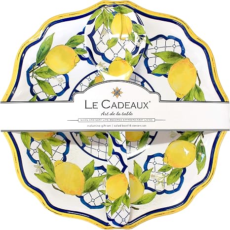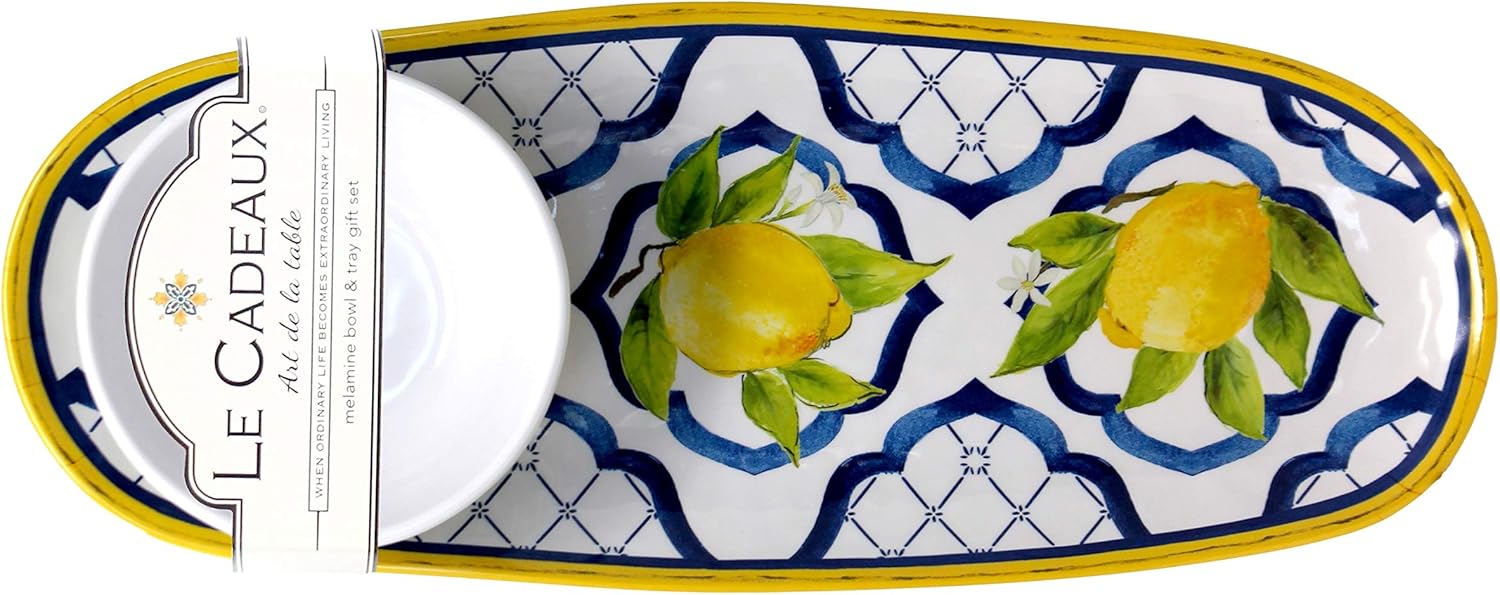 Amazon Com Le Cadeaux 304pal Palermo Lemon Melamine Tray And Bowl Serving Set Serving Bowls Tureens