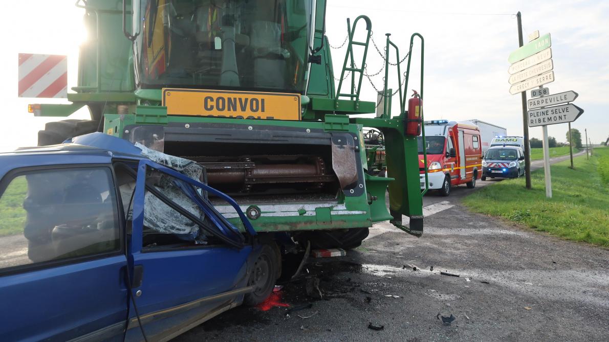 Une Voiture Percutee Par Une Moissonneuse A Monceau Le Neuf Et Faucouzy