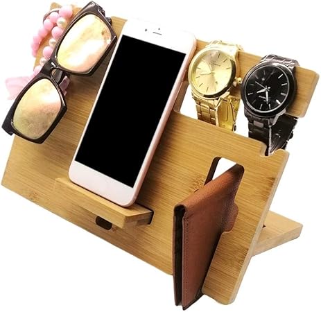 Support De Telephone En Bois Station D Accueil En Bois Montre Lunettes Accessoires Cles Portefeuille De Bureau Rack De Stockage Table De Chevet Organisateur Pour Hommes Femmes Amazon Fr High Tech