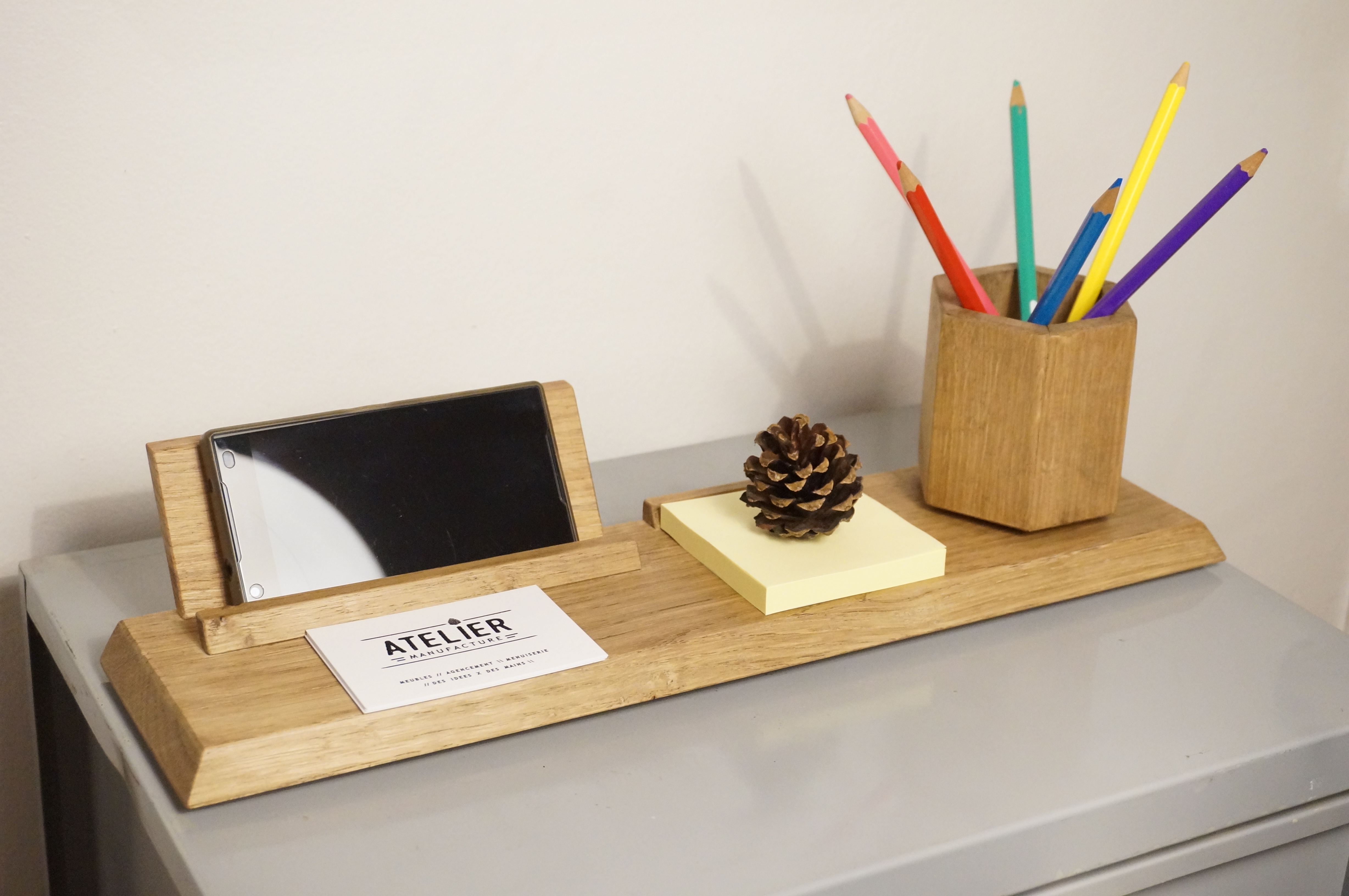 Petit Organiseur De Bureau 146x65mm Grave Et Personnalise Et Support Telephone