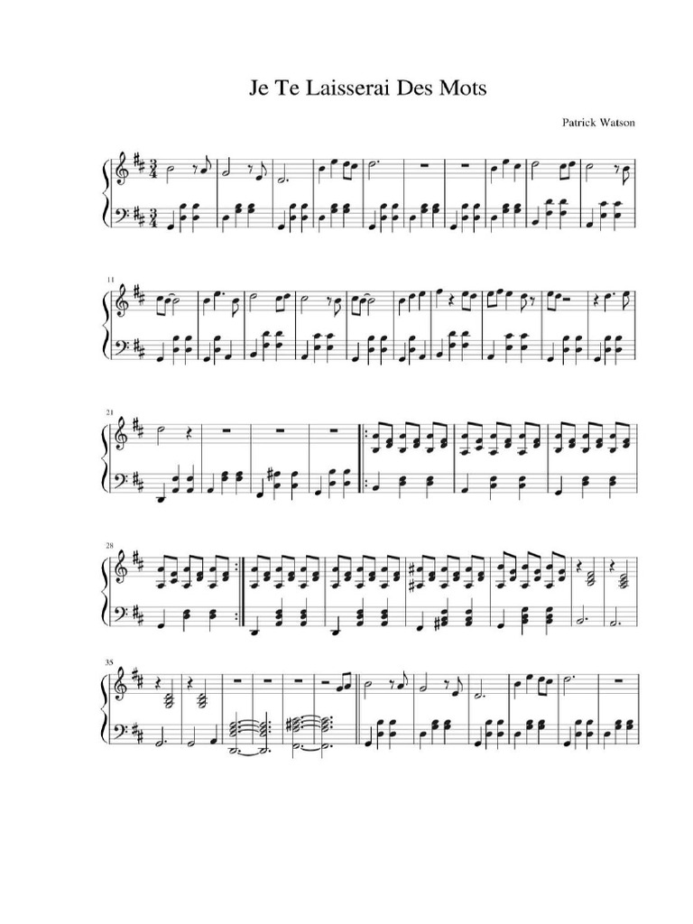 Je Te Laisserai Des Mots Patrick Watson ∙ The Cinematic Orchestra’s 07 piano ballad “To Build a Home,” which Watson cowrote and performed on, has been used to tearjerking effect in more than two dozen films and TV shows ∙ After working on several shorts,. Download sheet music for New Age Choose from New Age sheet music for such popular songs as Autumn Leaves advanced, Je te laisserai des mots, and Autumn Leaves Lesson Print instantly, or sync to our free PC, web and mobile apps. Print and download Je te laisserai des mots sheet music by David Magyel arranged for Piano Instrumental Solo in B Minor SKU MN.
