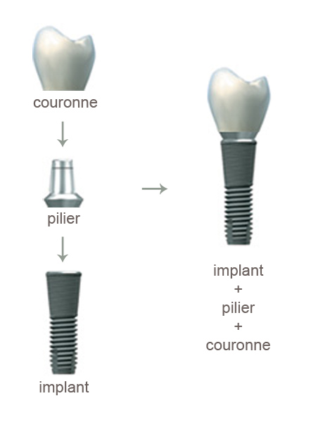 Foundation for Oral Rehabilitation;. 1 LA PROTHESE DENTAIRE SUR IMPLANT Classiquement, une prothèse dentaire sur implant est composée de 3 étages 1 Couronne (ou bridge) / 1 Pilier / 1 Implant Dans certain cas, la prothèse peut être directement fixé à l’implant sans pilier A COURONNE réhabilitation d’1 dent (« unitaire ») Une couronne est une prothèse dentaire qui sert à remplacer une dent manquante. Le prix moyen d’un implant dentaire avec pilier et couronne est de 1500€ à Bruxelles et ailleurs en Belgique Les centres d’implantologie dentaire Newdentaire sont représentés à Bruxelles par notre bureau, mais se trouvent dans des pays voisins d’Europe.