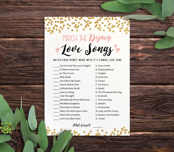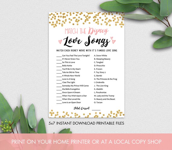 Match The Disney Love Songs Game Instant Download Diy Etsy