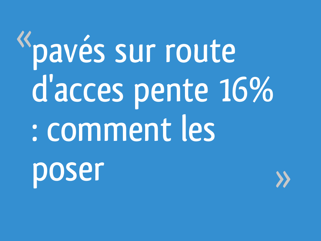 Pour la pose, il suffit de les emboîter les uns aux autres Pour les tasser dans le sable, éviter de taper directement dessus à l’aide du maillet au risque de casser le pavé autobloquant La meilleure façon de procéder et ainsi d’éviter ce risque est de placer sur le pavé une planche que vous allez taper sur le pavé en question. Poser des pavés sur un terrain en pente Meilleures réponses;. Question détaillée Question posée le 02/09/12 par Anonyme ,bonjour,j'ai une cour en pente de l'entrée de maison jusqu'au trottoir ,j'aimerai savoir si la pose de pavé est possible?il y a déjà des petits caillous non calcaire du genre gravillons,on souhaiterai aussi bien y garer nos voitures.