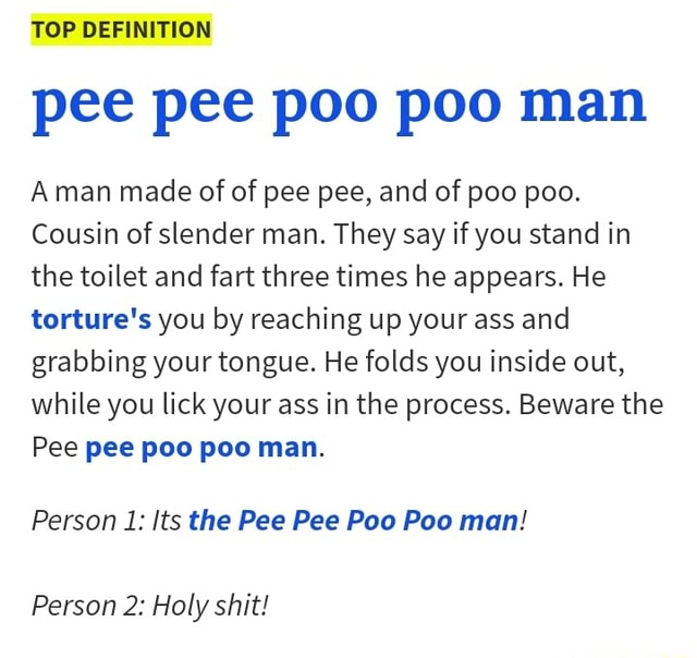 Top Definition Pee Pee Poo Poo Man A Man Made Of Of Pee Pee And Of Poo Poo Cousin Of Slender Man They Say If You Stand In The Toilet And Fart