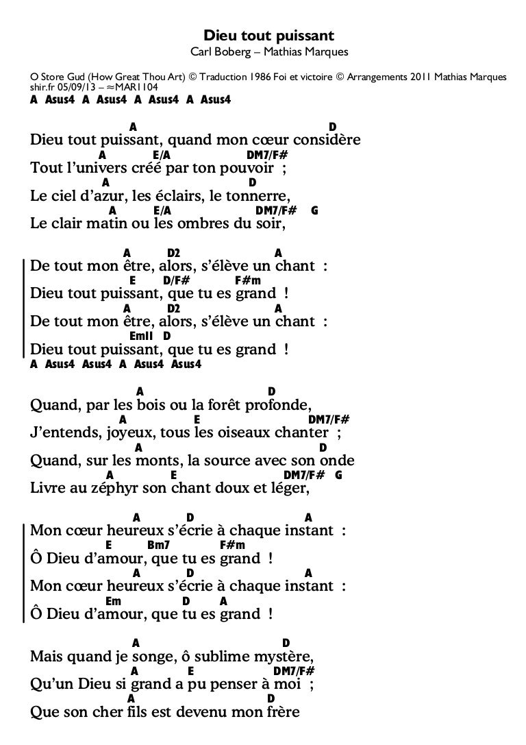 Dieu Tout Puissant Oco Carl Boberg Oco Mathias Marques