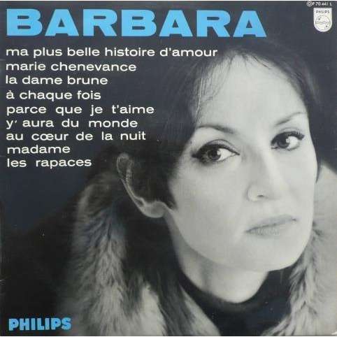 Ma plus belle histoire d'amour, c'est vous Sur la longue route Qui menait vers vous Sur la longue route J'allais le cœur fou Le vent de décembre Me gelait au cou Qu'importait décembre Si c'était pour vous Elle fut longue la route Mais je l'ai faite, la route Cellelà, qui menait jusqu'à vous Et je ne suis pas parjure Si ce soir, je vous jure. Barbara Ma plus belle histoire d'amour (Letras y canción para escuchar) Du plus loin, que me revienne / L'ombre de mes amours anciennes / Du plus loin, du premier rendezvous / Du temps des premières peines / Lors, j'avais quinze. Find album reviews, stream songs, credits and award information for Ma Plus Belle Histoire d'Amour c'est Vous Barbara on AllMusic 199 Paroles de chansons / B / Barbara / Ma plus belle histoire d'amour Ma plus belle histoire d'amour Barbara Date de Sortie 01/01/1967 1 Parce Que Je T'aime 2 Y Aura Du Monde 3 La Dame Brune 4.