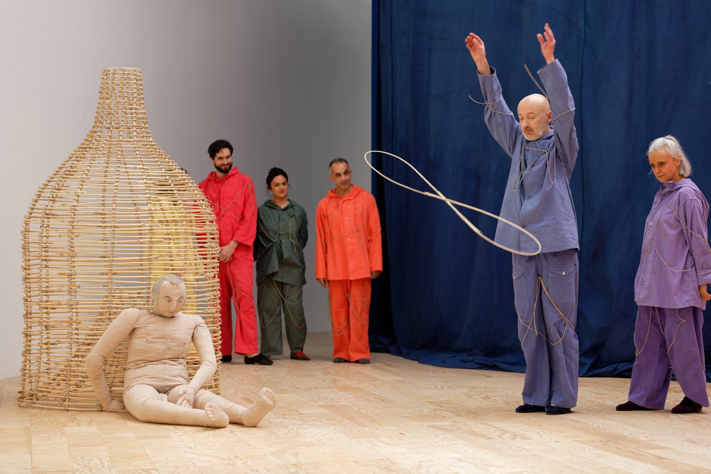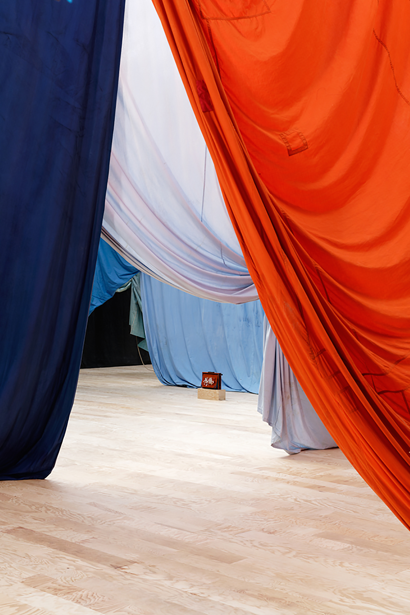 Toutes les équipes du Palais de Tokyo les artistes, l’équipe curatoriale, les équipes d’accueil, les médiateurrices, les monteursses, les agents d’entretien, de sécurité et de maintenance, l’équipe de production mais aussi les libraires se préparaient à vous accueillir et à vous faire passer, à nos côtés, d. Ulla von Brandenburg, “Le milieu est bleu” Installation view at Palais de Tokyo, Paris, Photography by Aurélien Mole Courtesy of the artist;. Amal Kenawy, The Silent Multitudes, 10, steel, LGP gas tanks, video, 300 x 600 x 400 cm;.