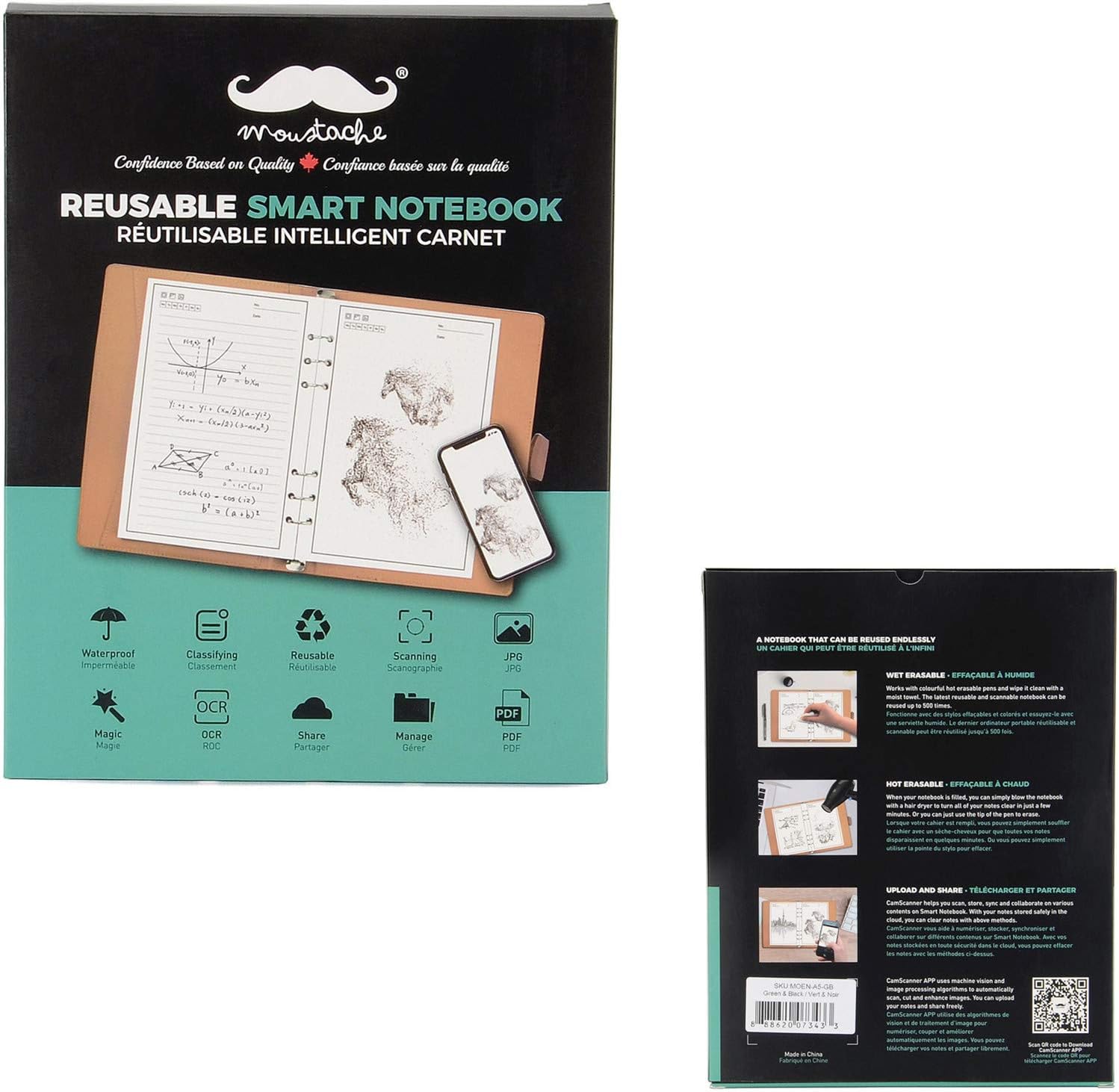 Reusable Smart Notebook Water To Erase Writing Memo Book A5 Pu Moustache