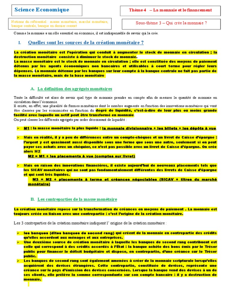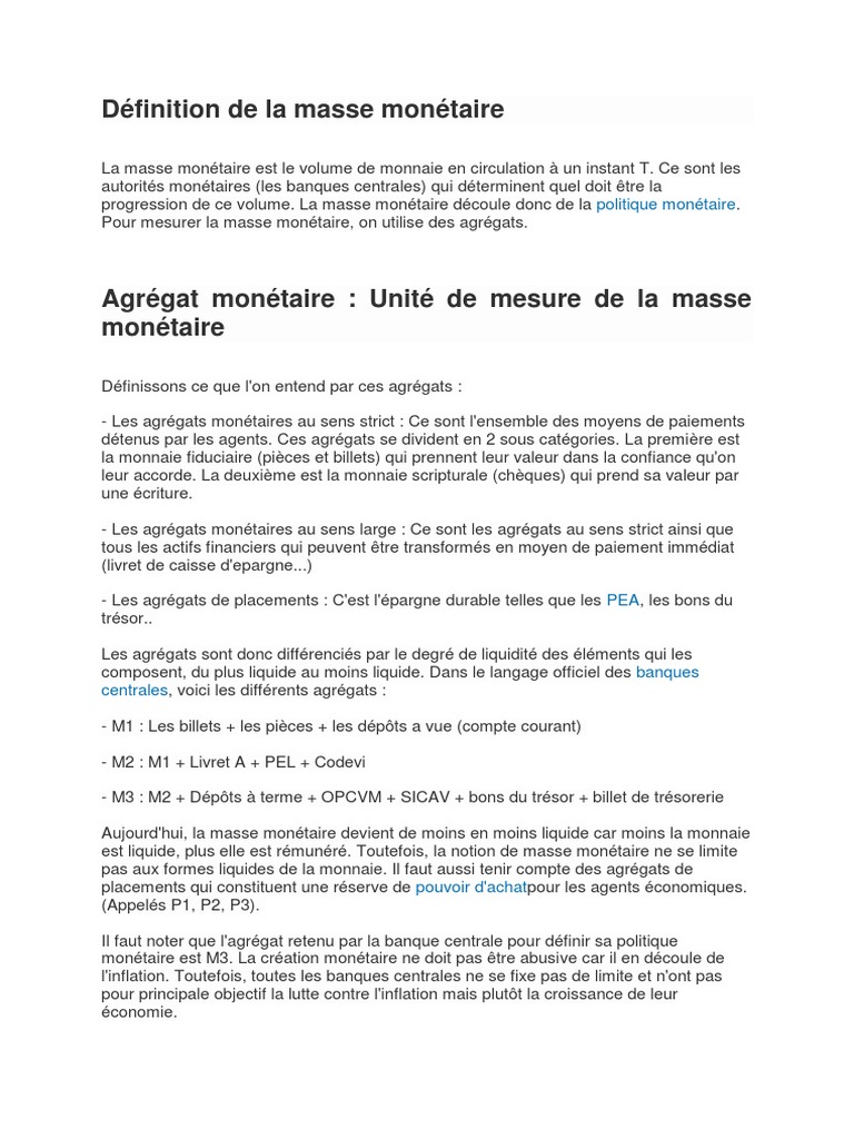 Definition De La Masse Monetaire Masse Monetaire Creation De L Argent