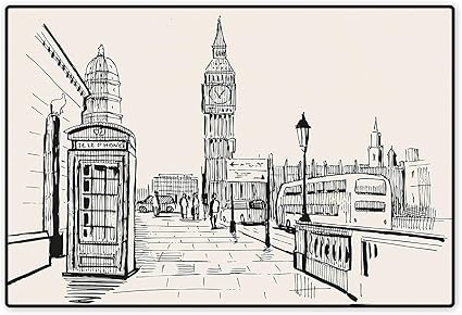 Interieur Exterieur Tapis De Sol London City Avec Big Ben Monument Scene Dans Sketch Style Britannique Celebre Ville Illustrations Gris Creme Facile A Nettoyer 4 X5 5 8 X8 5 W170cm X L260cm Color1 Amazon Fr Cuisine