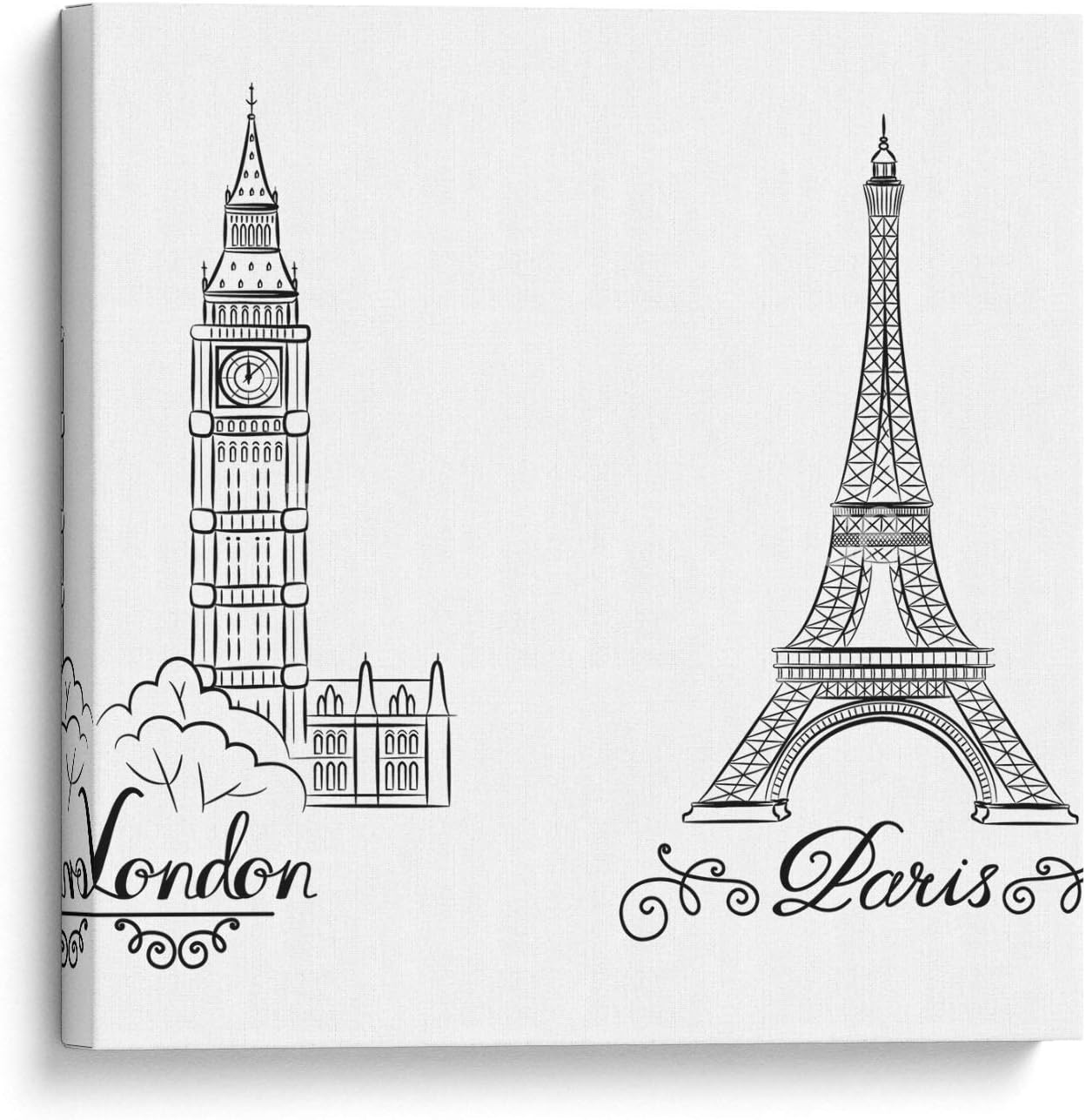 Main Croquis Monde Celebres Monument Collection Big Ben Londres Angleterre Et Croquis De Paris Tour Eiffel Toile Art Mural Photo Decor Maison Giclee 12 X 12 30 X 30 Cm Amazon Fr Cuisine Maison