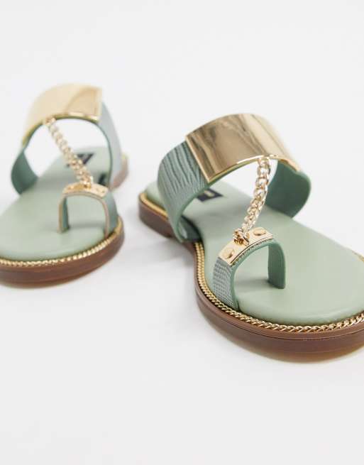 River Island Wide Fit Chain Sandals In Sage Green Asos