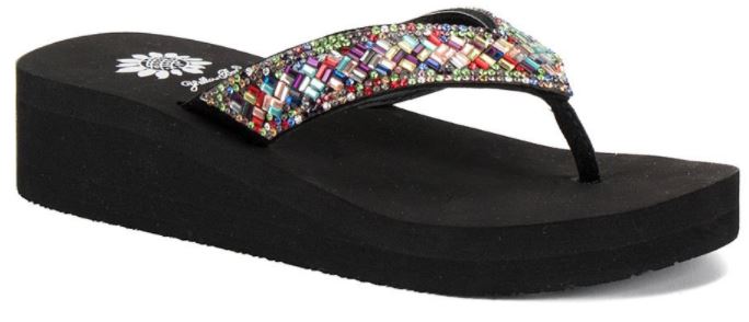 Yellow Box Women S Leonella Black With Cow Print Wedge Flip Flops Cavender S